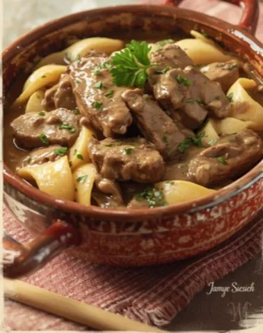 Le Beef Stroganoff (ou « Bœuf Stroganov » en français) est un ragoût de bœuf mijoté dans une sauce onctueuse à base de crème, de moutarde et souvent relevée d’un léger goût d’oignons et de champignons. Contrairement à d’autres plats mijotés, le Beef Stroganoff se distingue par son onctuosité et la tendreté de la viande.