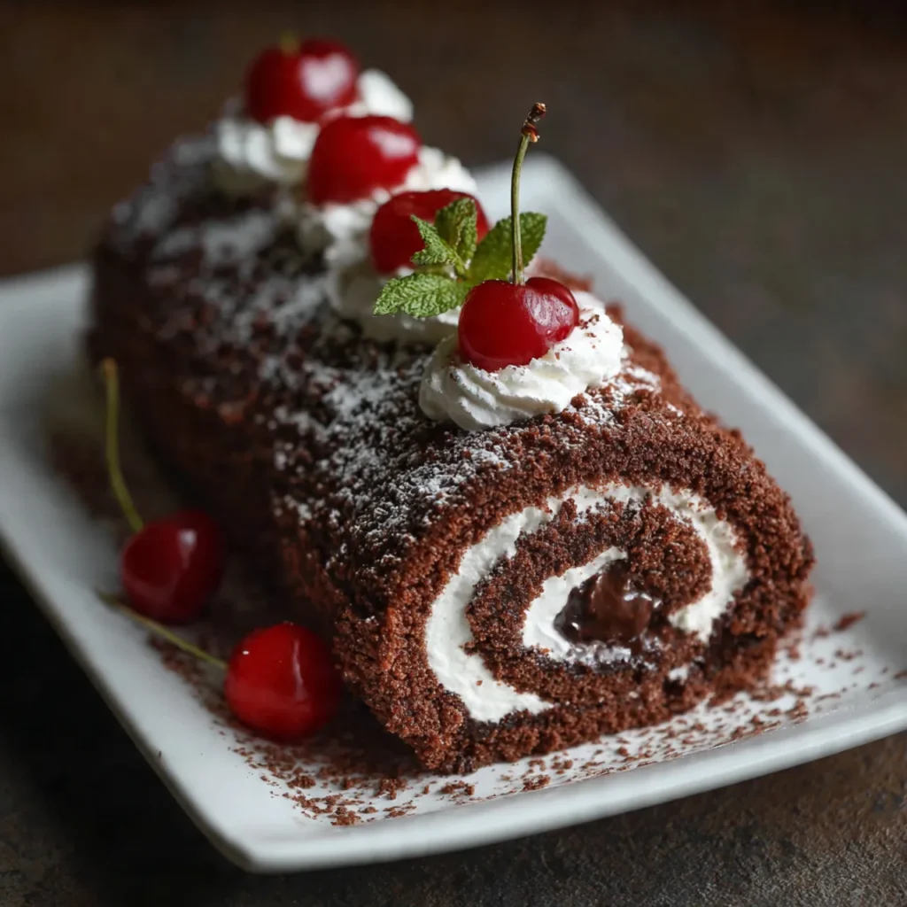 The Black Forest cake, or Schwarzwälder Kirschtorte, originated in Germany’s Black Forest region. Traditionally made with layers of chocolate sponge, whipped cream, cherries, and a hint of kirsch (cherry brandy), it has become one of the most beloved desserts worldwide. The Swiss roll version takes these same flavors and transforms them into a lighter, more modern presentation.