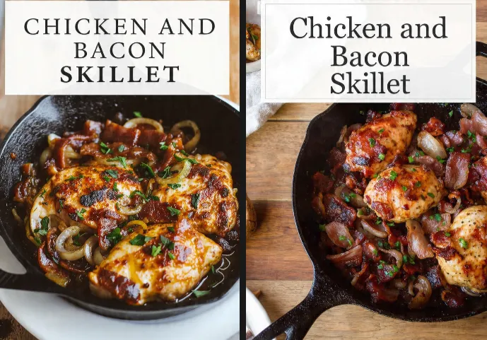 Chicken and Bacon Skillet is the ultimate one-pan comfort meal — rich, creamy, and bursting with flavor. It combines crispy bacon, juicy chicken, and a velvety cream sauce infused with garlic and herbs. The result is a dish that’s hearty yet elegant, perfect for busy weeknights or relaxed weekend dinners.