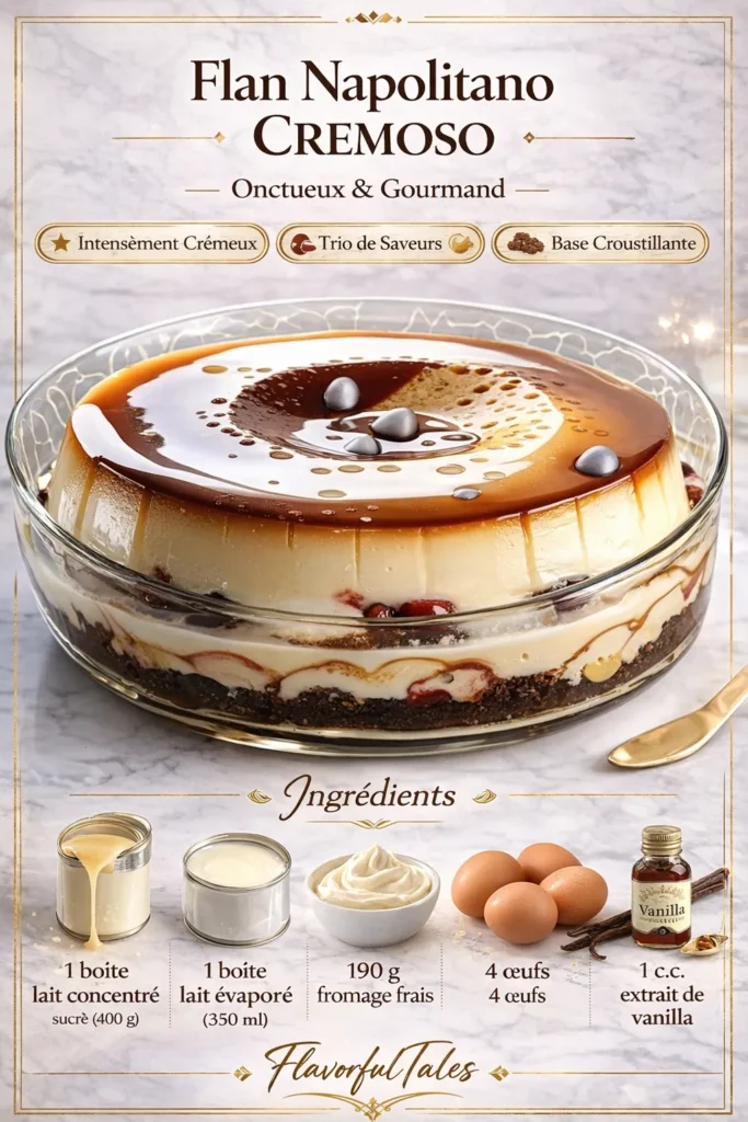 Préparer un flan napolitano maison, c’est redécouvrir la simplicité et la précision de la pâtisserie traditionnelle. Ce dessert ne demande ni techniques complexes ni ingrédients rares, mais un soin particulier dans la cuisson et le refroidissement. Le résultat est un flan d’une onctuosité absolue, au goût authentique et réconfortant.