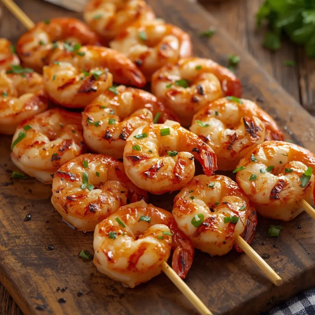 Garlic Butter Shrimp Skewers – Brush with melted garlic butter while grilling.
