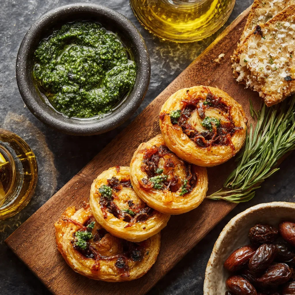 Olive and Pesto Aperitif Palmiers are the ultimate entertaining recipe. They’re quick to prepare, elegant to serve, and universally loved. Their combination of crisp pastry, aromatic pesto, and savory olives ensures they’ll be the first dish to disappear from the table.