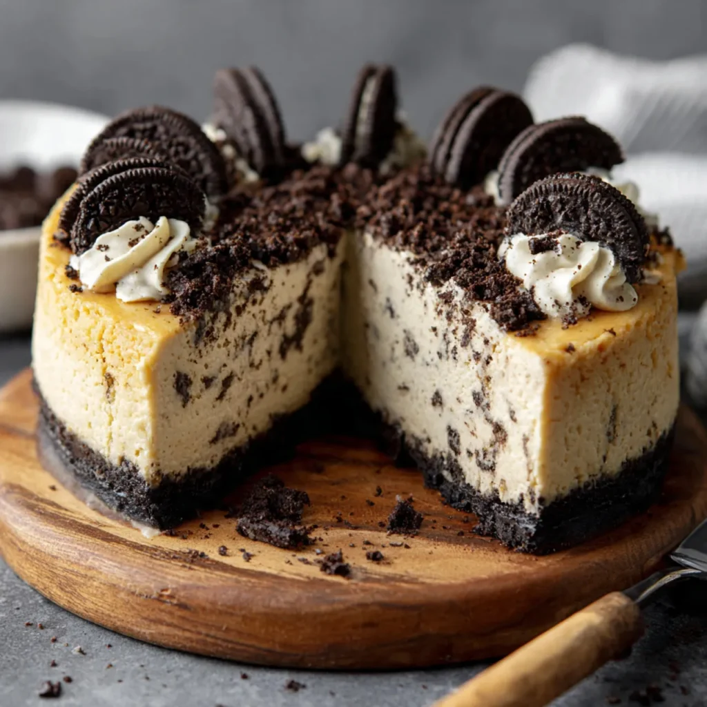 Oreo Cheesecake is the ultimate dessert for anyone who loves cookies and cream. It’s rich without being overwhelming, sweet without being cloying, and elegant without being complicated. The combination of creamy filling, crunchy crust, and chocolatey cookies creates a dessert that feels both nostalgic and luxurious. It’s a dish that brings joy to any table, whether shared at a celebration or enjoyed quietly with a cup of coffee.