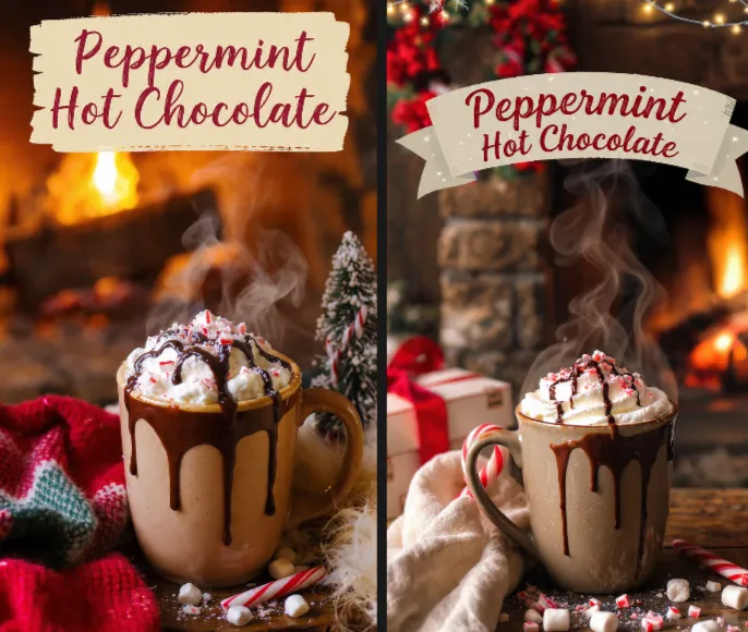 Classic Peppermint Hot Chocolate: Traditional version with dark chocolate and peppermint extract. White Peppermint Hot Chocolate: Use white chocolate for a creamy, sweet variation. Mocha Peppermint Hot Chocolate: Add a shot of espresso for a coffee twist. Spiked Peppermint Hot Chocolate: Add peppermint schnapps or crème de menthe for an adult version. Vegan Peppermint Hot Chocolate: Use almond or oat milk and dairy-free chocolate. Salted Peppermint Hot Chocolate: Add a pinch of sea salt to enhance the flavors.