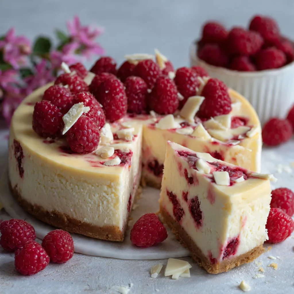 Raspberry White Chocolate Cheesecake is more than just a dessert—it’s a celebration of flavor, texture, and beauty. With its creamy white chocolate filling, buttery crust, and vibrant raspberry swirl, it captures the essence of indulgence in every bite. Each slice offers a perfect harmony of sweetness and tang, making it a dessert that delights the senses and impresses every guest. Whether baked for a special occasion or simply to treat yourself, Raspberry White Chocolate Cheesecake remains a timeless favorite that never fails to impress.