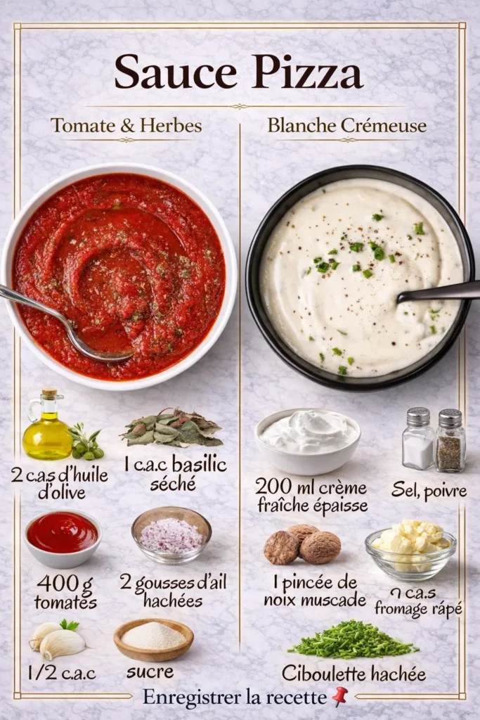 Préparer sa sauce pizza maison, c’est redonner à ce plat emblématique toute son authenticité. Contrairement aux sauces industrielles souvent trop sucrées ou trop salées, une sauce faite maison permet de maîtriser les saveurs, la texture et la qualité des ingrédients. La sauce tomate apporte une base acidulée et aromatique, tandis que la sauce blanche offre une alternative douce et fondante, parfaite pour les pizzas aux fromages, aux champignons ou au poulet. Ces deux recettes se complètent et s’adaptent à toutes les garnitures.