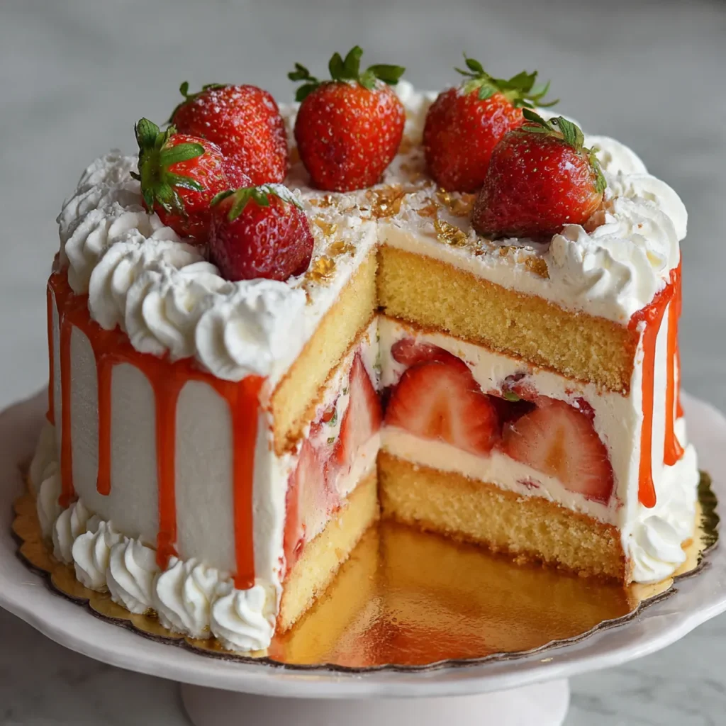 The Strawberry Shortcake New Year Cake is a dessert that perfectly captures the spirit of celebration—light, elegant, and bursting with
