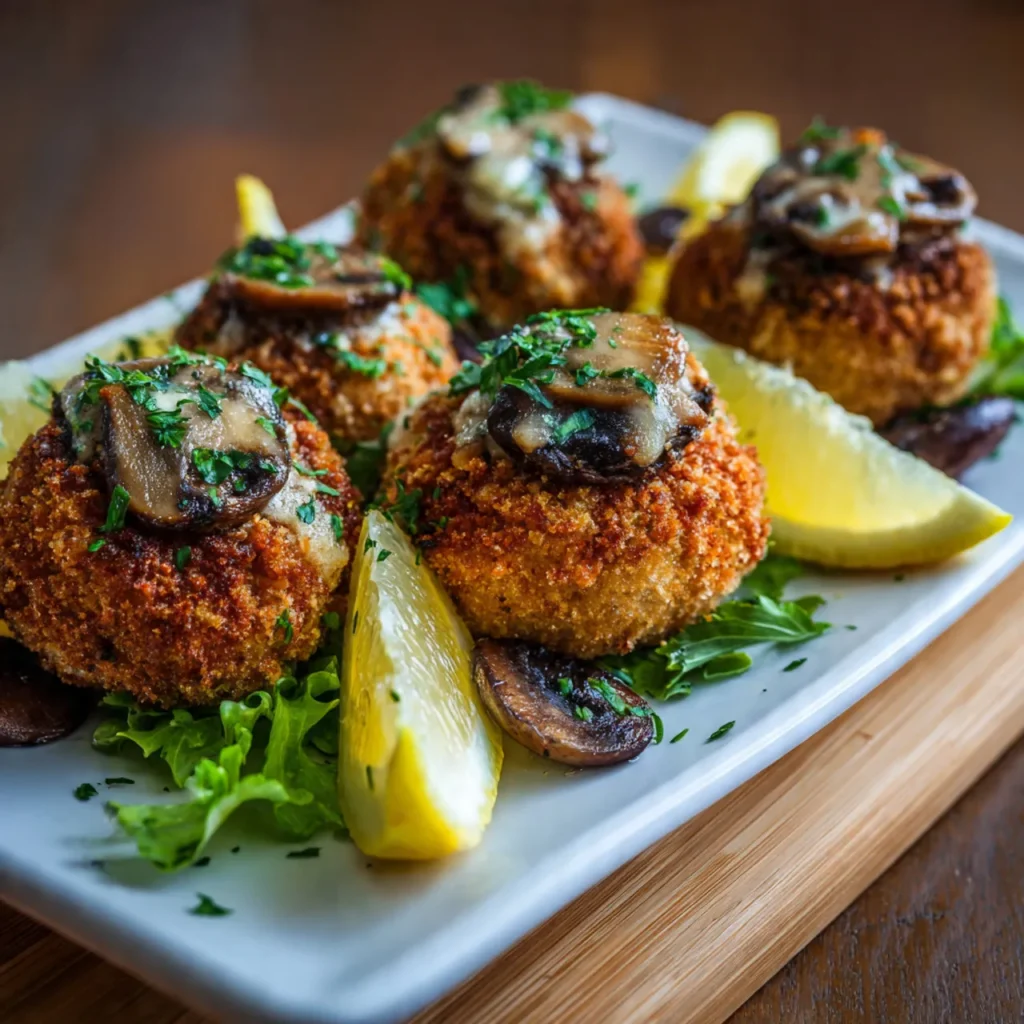 These mushrooms are perfect as an appetizer, side dish, or party snack. They pair beautifully with dipping sauces such as garlic aioli, ranch, or marinara. For a more elegant presentation, serve them on a bed of greens or alongside a charcuterie board.