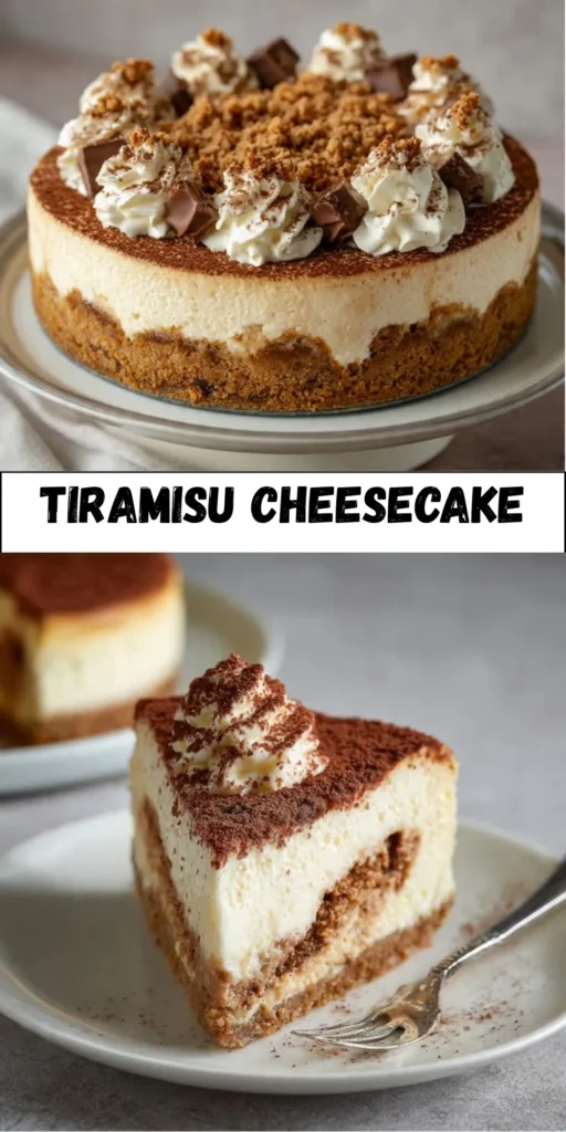 Tiramisu cheesecake is a masterpiece of flavor and texture, combining the best elements of two classic desserts. With its buttery crust, creamy mascarpone filling, espresso-soaked layer, and cocoa finish, it offers a perfect balance of sweetness and depth. Easy to prepare yet elegant to serve, it’s ideal for any celebration or special occasion. Each slice tells a story of indulgence, craftsmanship, and timeless flavor — a dessert that truly captures the essence of Italian-inspired elegance.