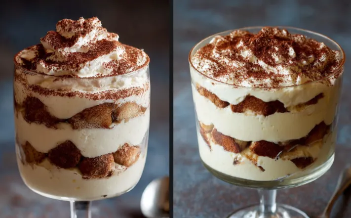 The perfect tiramisu trifle is creamy, airy, and deeply flavorful. The mascarpone cream is smooth and rich, the coffee-soaked ladyfingers are soft but structured, and the cocoa adds a hint of bitterness that balances the sweetness.